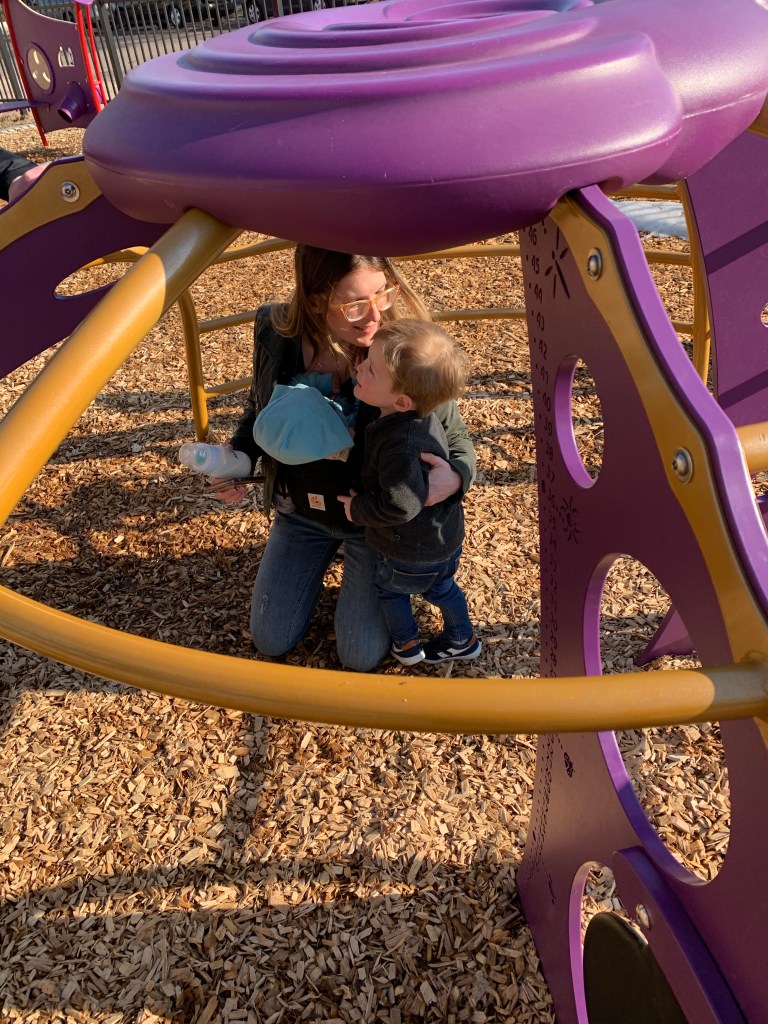 It may not matter. Neither of you can read yet, and the only other person reading is your grandma Bekka (hi mom!) but it has been hard to write lately.