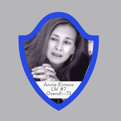 The 16th and most recent (for now) French Nobelist is one of the oldest winners for the Nobel, which makes sense as a she plumbs the depths of her personal experience for her writing. Her works frequently cover her own lived experiences as auto-socio-biographical or memoir-style composition. Her childhood in Normandy was marked by a young girl’s stressful and shameful agonies of post-war trauma in a misogynist patriarchy. Her adulthood, as a teacher and author, has been marked by stressful and shameful agonies of a modernizing world that retains many old power structures.