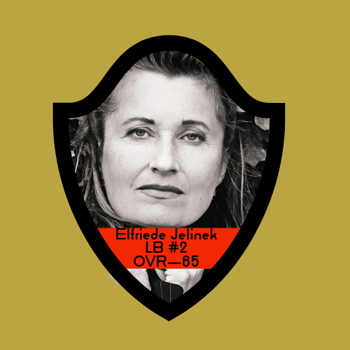 That combative confrontational tone put me in mind of a defender, especially an aggressive one who might both attack down the flank and also have to rush back to stop others, so I’m going to play Elfriede as a fullback. (I’m also tipping my cap to her socialist politics by putting her on the left side, and using the colors of my favorites at Freiburg who also have a fondness for defensive Austrians.) While there’s some real powerful ideas in Jelinek’s work it is also QUITE difficult to understand and “mass of text shovelled together” seems a fair critique to me. I’ll gladly acknowledge she can do some impressive things, but it’s often hard to wade through the confusion to find it.
